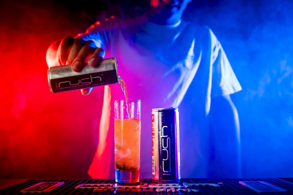 Rush Energy + vodka = de perfecte mix voor een avond vol energie.